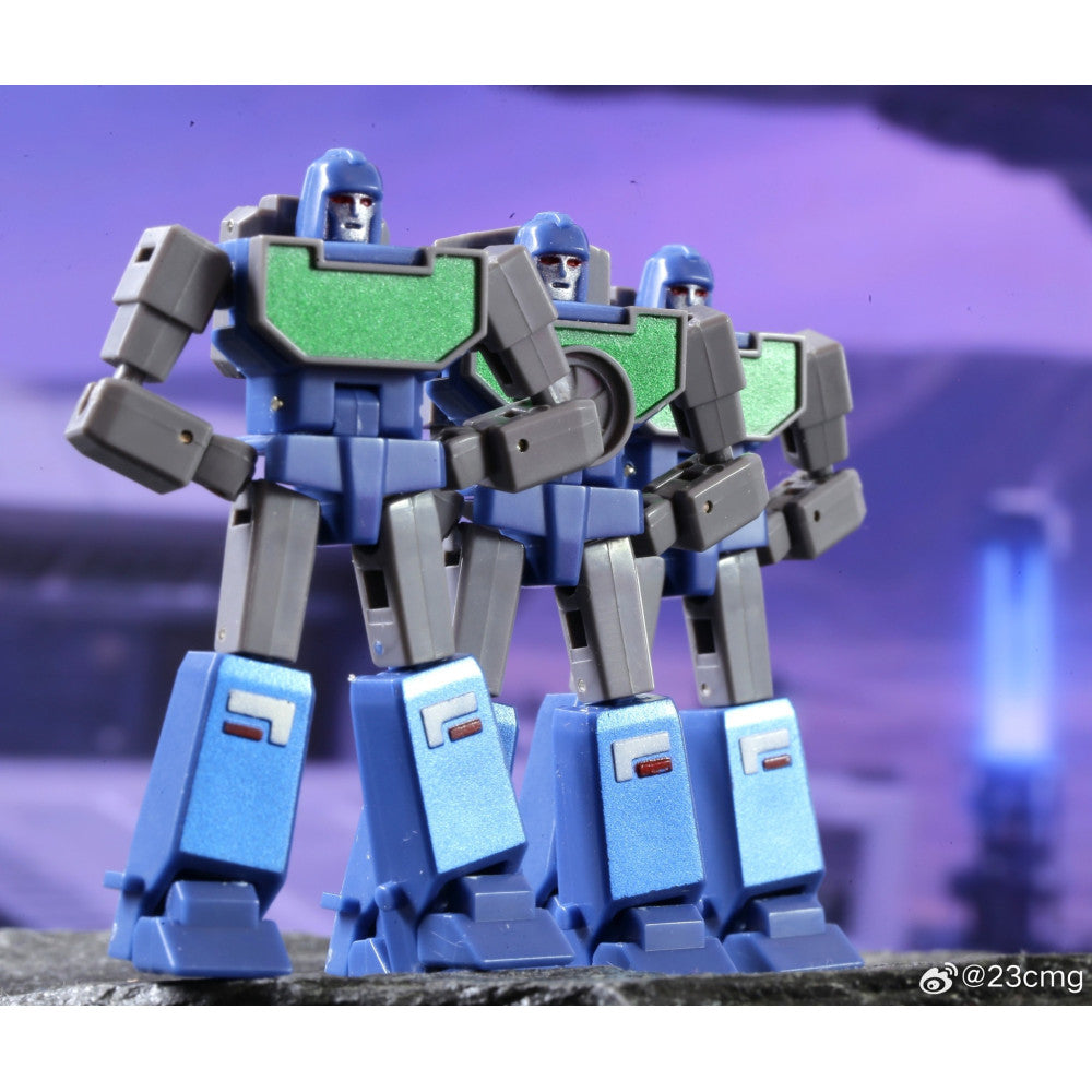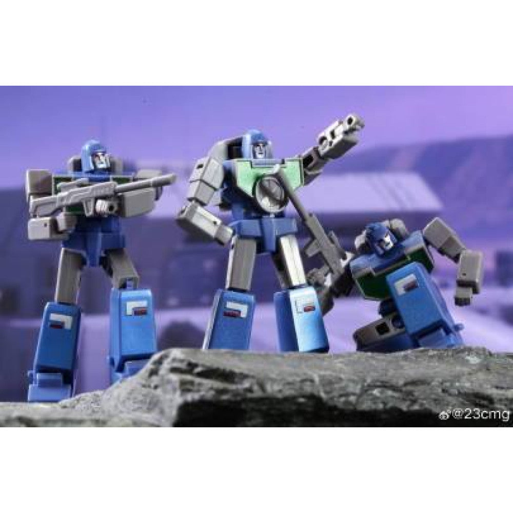 Galaxy Toys presents LAW ENFORCEMENT TEAM! Part of the "New Mini" series, Law Enforcement Team are a trio of miniature sized third party robot figures that transform from robot mode to camera mode and back! The figure stands approximately 5cm tall and includes additional accessories. (Additional figures are shown for scale and are sold separately.)