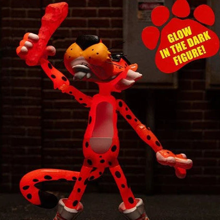 From your favorite crunchy snack line, Cheetos, comes the iconic Chester Cheetah with hot and spicy glow-in-the-dark deco! This Cheetos Chester Cheetah Flamin' Hot Glow-in-the-Dark 6-Inch Action Figure features stylish kicks, sleek shades, and paws covered in Cheetle (Cheeto dust - from all the obvious munching)! Accessories include a realistic-sized Cheeto, a bag of Flamin' Hot Cheetos, 2x alternate hands, and an alternate head. This fully articulated action figure comes in unique Flamin' Hot Cheetos packaging. Remember, it's not easy being cheesy!