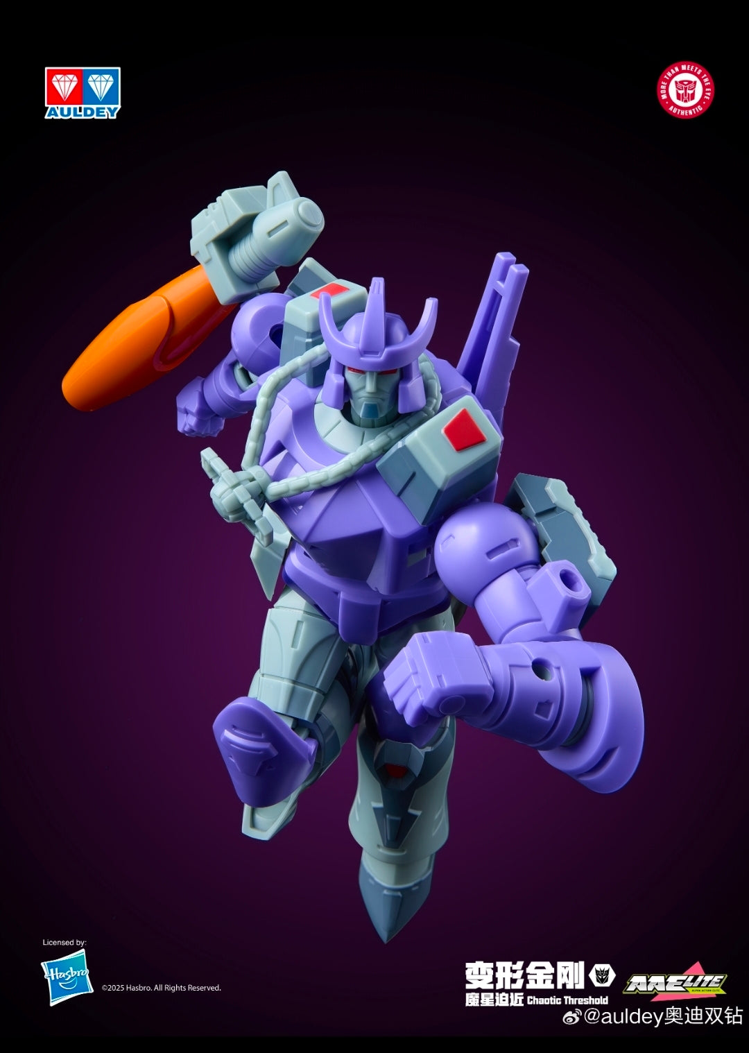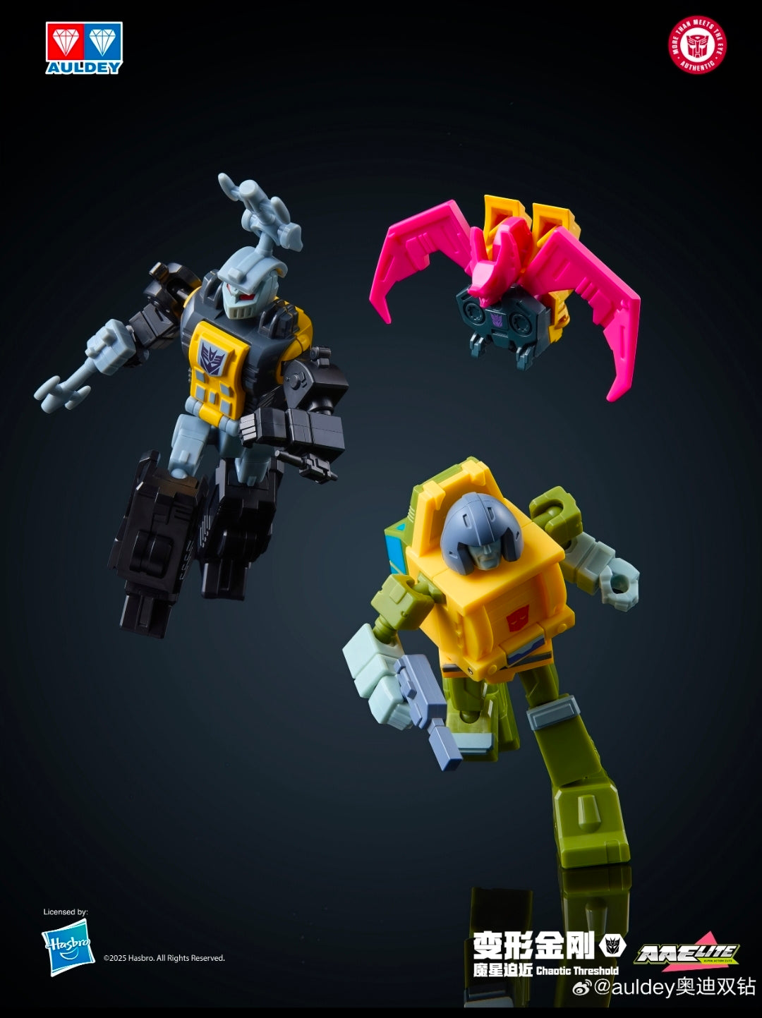 NOTE: Cases are shipped as unopened, sealed sets of 6 Transformers Audley Blind Box Display Cases directly from factory production. The Megatron and Galvatron Chase Figures are inserted at random by the factory.