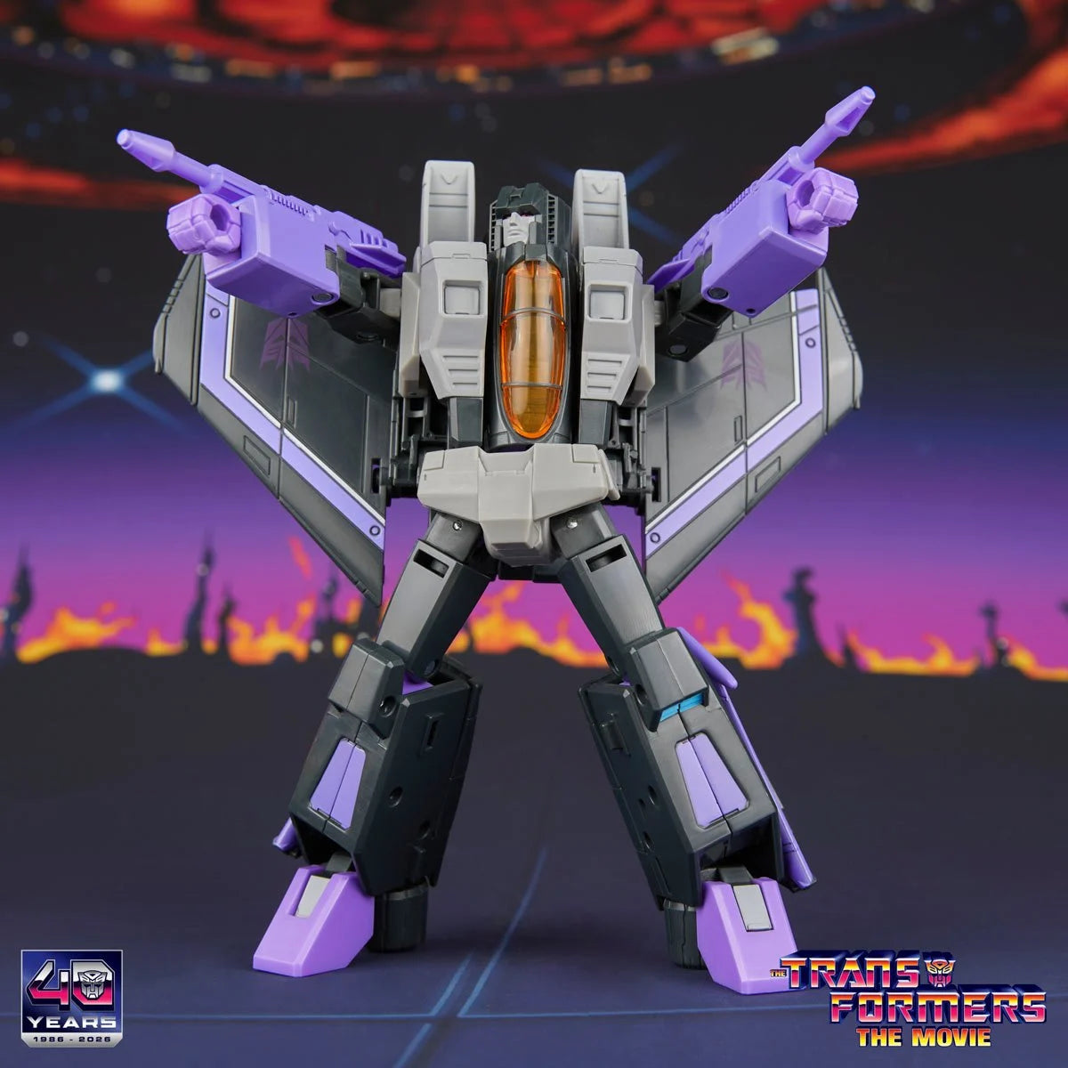 Bring the epic action of the Transformers movies from the big screen into your collection with the Transformers Studio Series Voyager Class 6 1/2-inch Skywarp action figure, inspired by The Transformers: The Movie! Transformers Studio Series toys are collectible action figures that feature movie-inspired details and accessories. Convert the Studio Series Transformers Skywarp action figure from robot to jet mode in 27 steps. The figure has articulated head, arms, and legs for action poses, and includes blaster accessories that attaches in both modes.